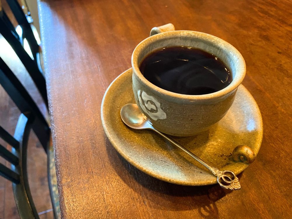 取材の日は私もブレンドとトーストをいただきましたが、ボリュームがあり、おなかいっぱいになりました。このときに使われていたコーヒーカップは、地元の陶芸教室「清野陶房」さんの作品とのこと。