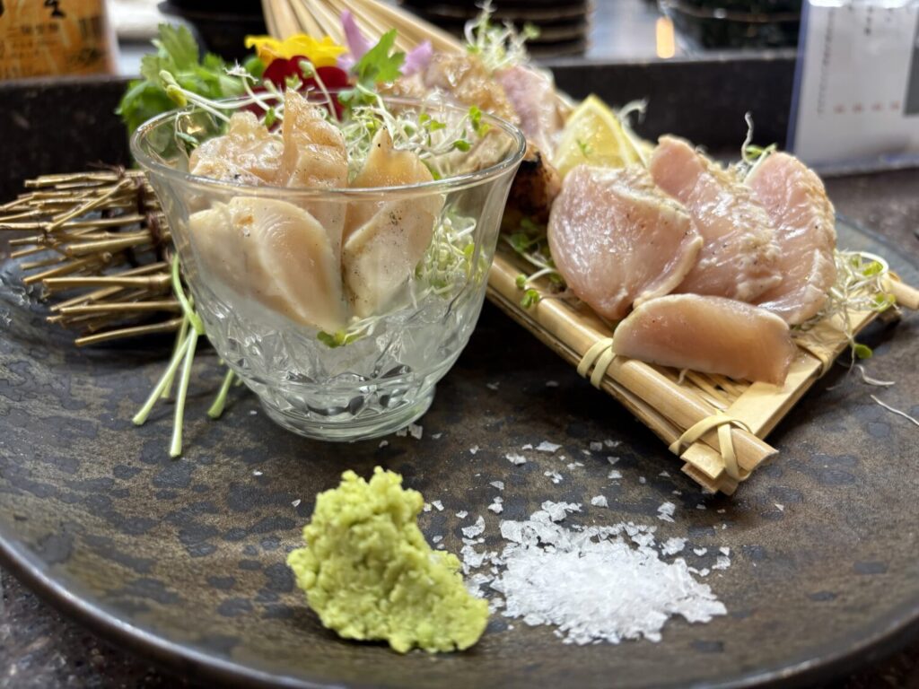 ささみ昆布〆は、ねっとりとした食感が特徴的で、口に含むと旨みが一気に広がります。