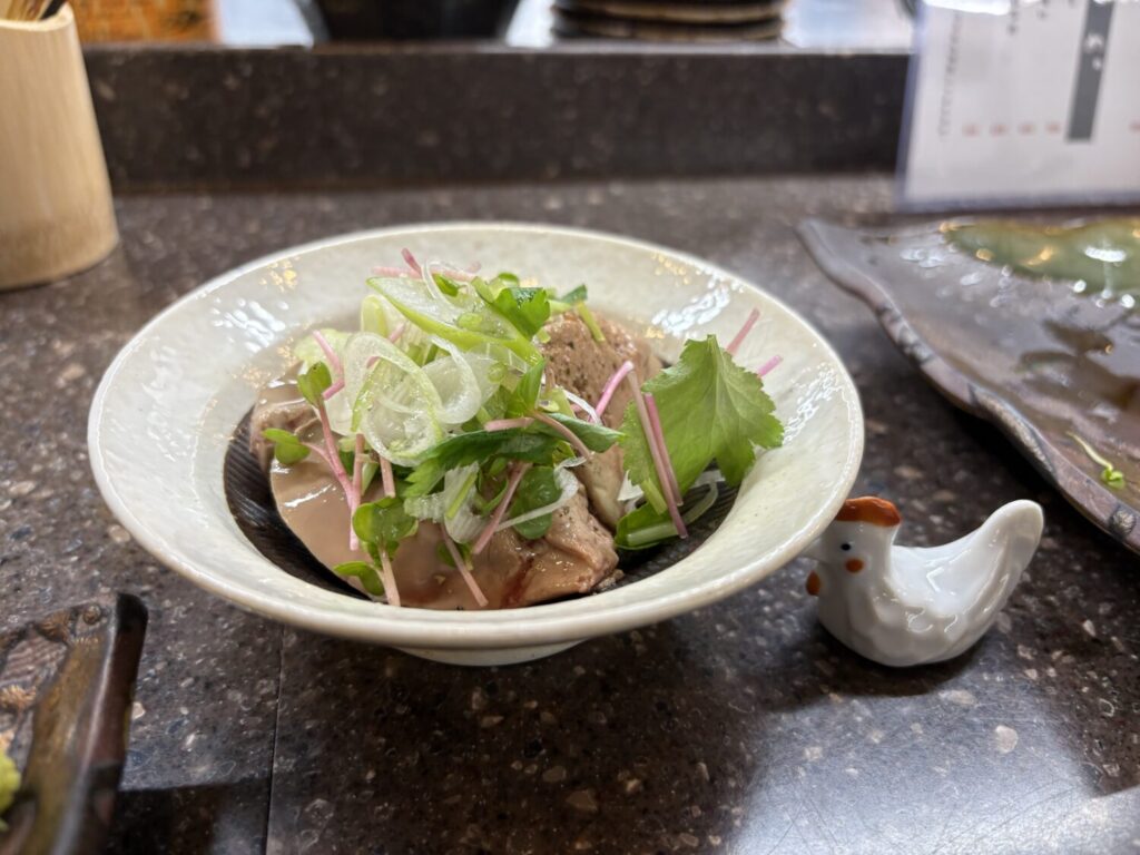 ももたたきは、皮目は表面がカリッと焼き上げられており、香ばしさが印象的。