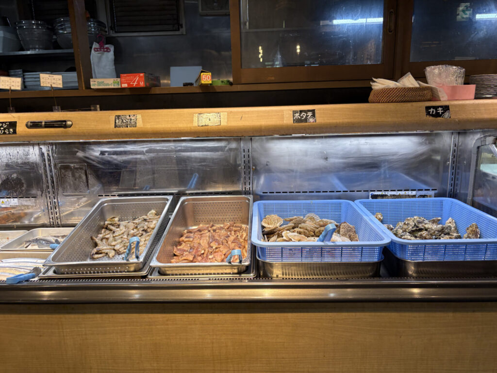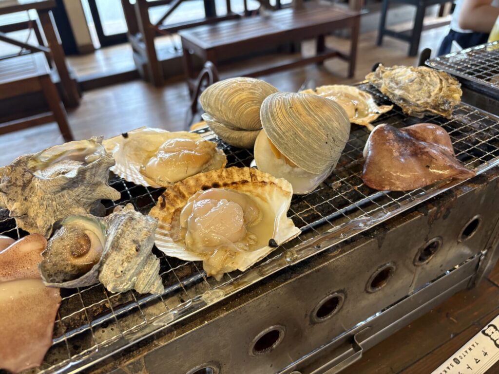 どの貝を焼くか、何個食べるかを自分で決められるため、最初から食事のペースを組み立てやすいのも特徴です。