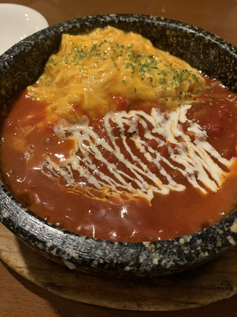 オムライスという馴染みのある料理を、温度と時間の経過まで含めて楽しませてくれる一皿です。