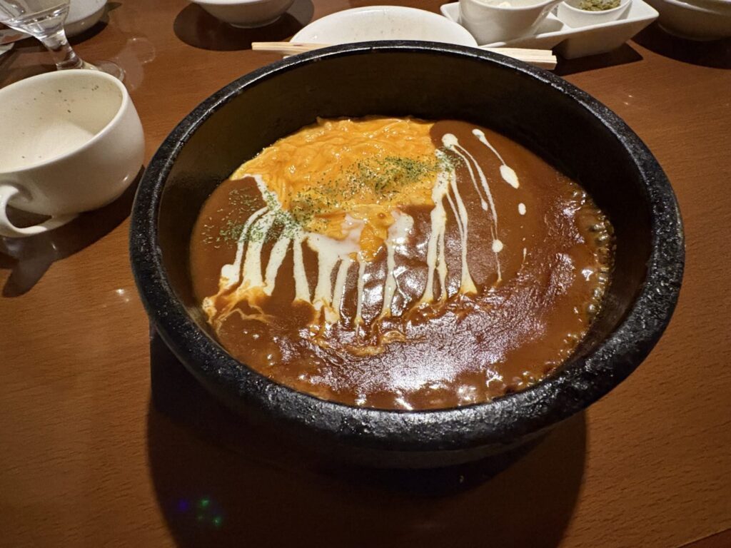 石鍋の余熱によって、食べ進めるうちに卵の一部がゆっくりと火入れされていくため、最初から最後まで同じ状態にならない点も特徴です。