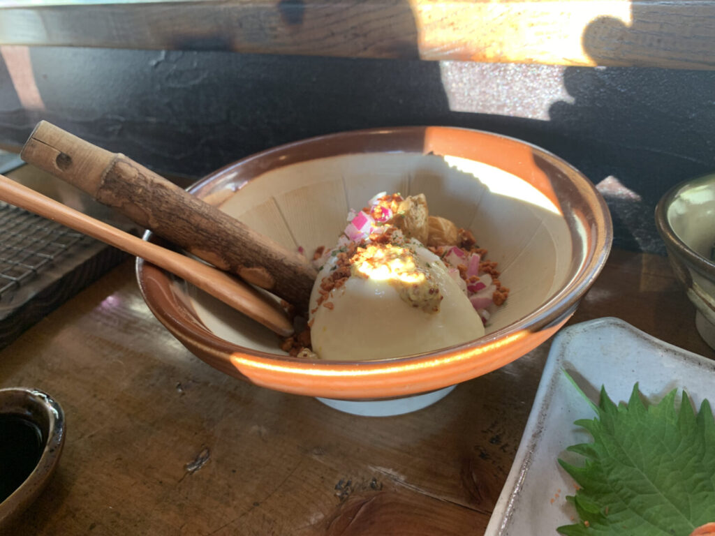 すり鉢とすりこぎが用意されており、なめらかになるまで潰すもよし、あえてゴロっと感を残すもよし。
