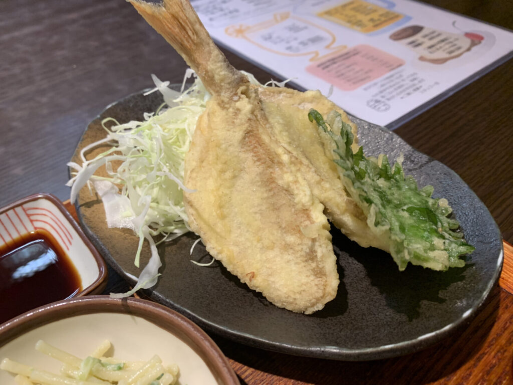 魚は薄く衣をまとい、表面はさくっと香ばしく、中はふっくらとした食感です。