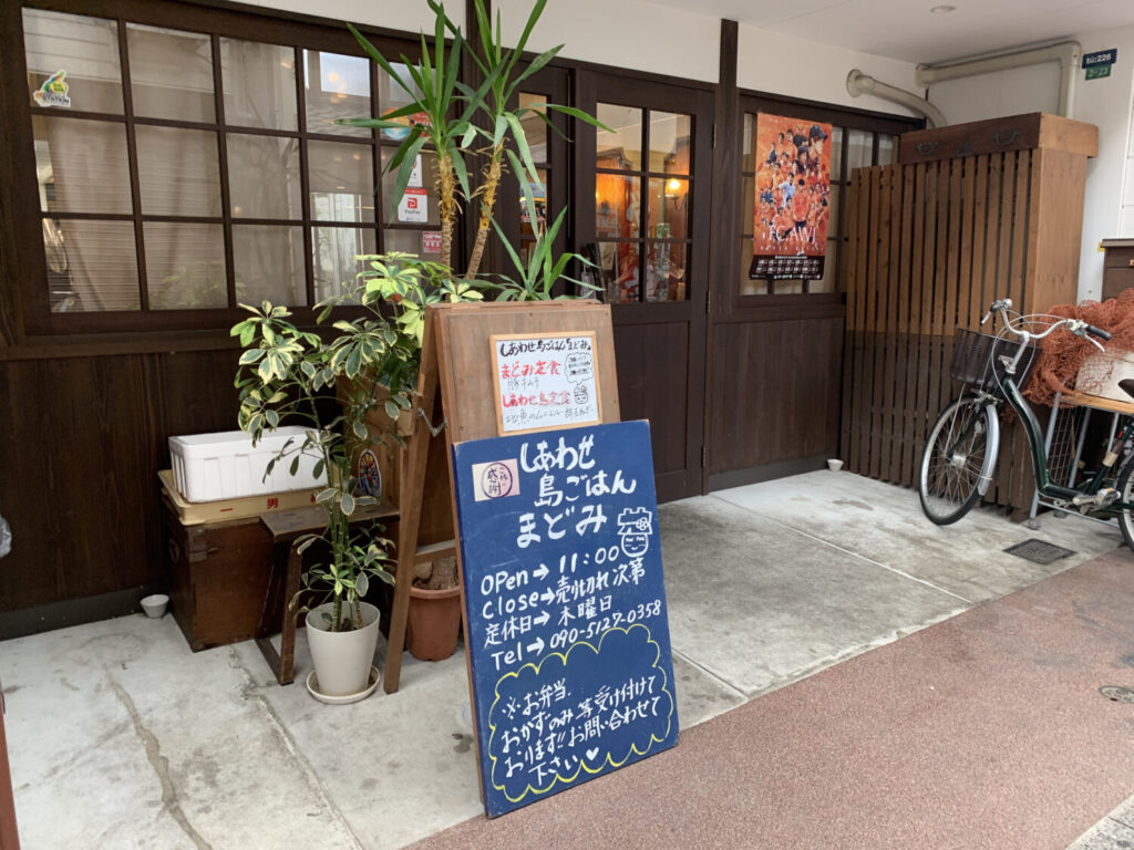 大浜海岸から洲本温泉、洲本城へと続くエリアのほど近く、コモード56商店街の一角に店を構えるのが、「しあわせ島ごはん まどみ」です。