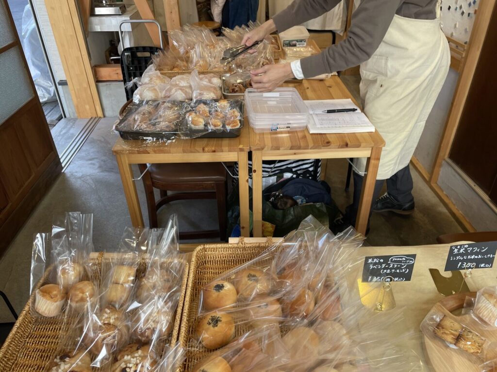 出店日に販売するパンは5種類、およそ150個ほど。店頭に並ぶおいしそうなお米パンの数々に思わず見惚れます。