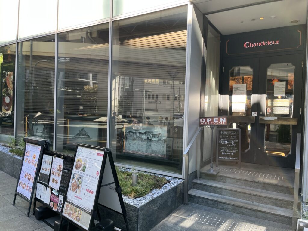 「シャンデレール」は大阪梅田に2か所あります。梅田店とハービスPLAZA店です。今回は梅田店にお伺いしました。梅田店は道路に面していて、なんだかおとぎの国のようにかわいい感じなんです。歩いて行ける距離にハービスPLAZA店もあるのですが、この2店舗、価格も内容も少しずつ違っています。同じ日にハービスPLAZA店も行ってみたところ、値段はハービスPLAZA店の方がやや高めで、本日のガレット、本日のクレープについては内容も違っていました。