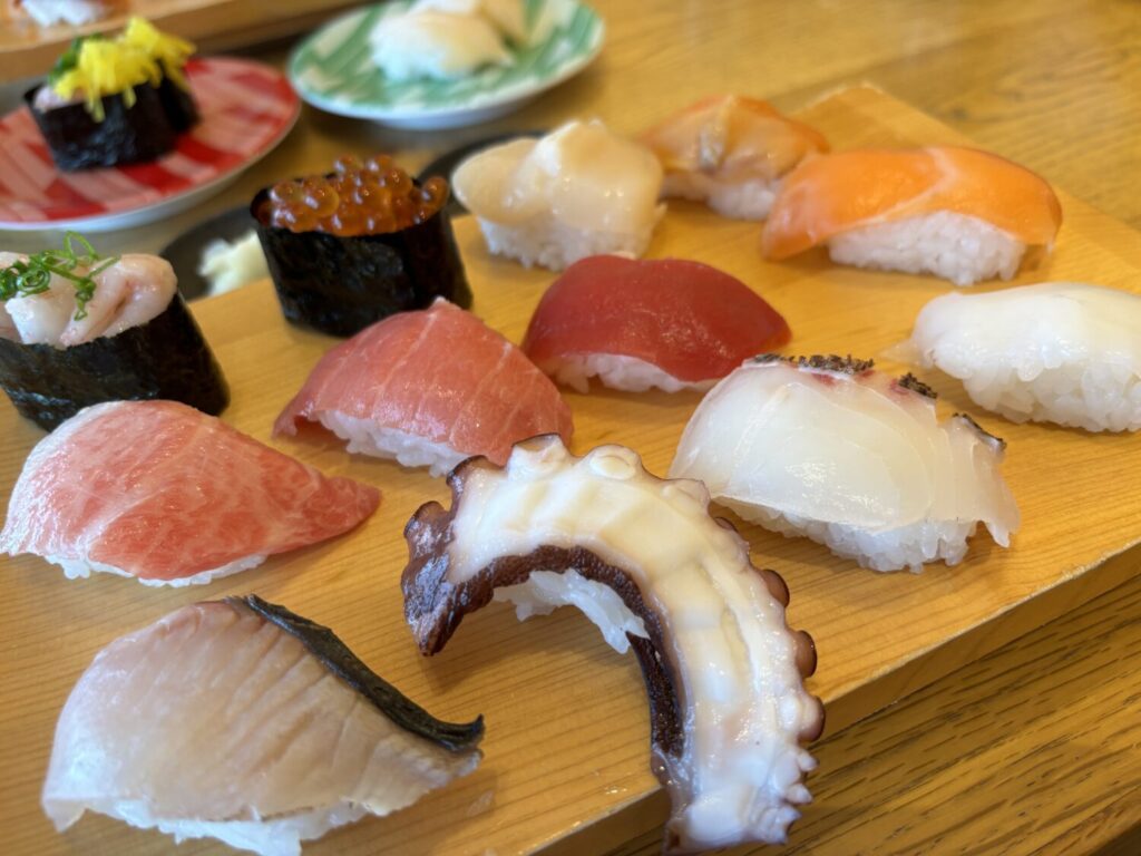 観光途中でも入りやすく、「回転寿司=ファミリー向け」というイメージよりも、少し大人寄りの落ち着いた雰囲気です。