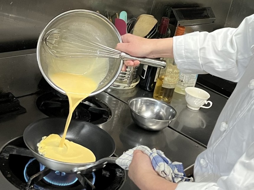 作り置きはせず、注文が入ってからつくりはじめるオムレツ。今回、特別に調理のご様子を見学させていただきました。