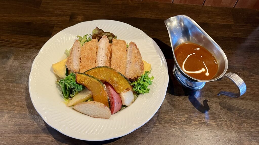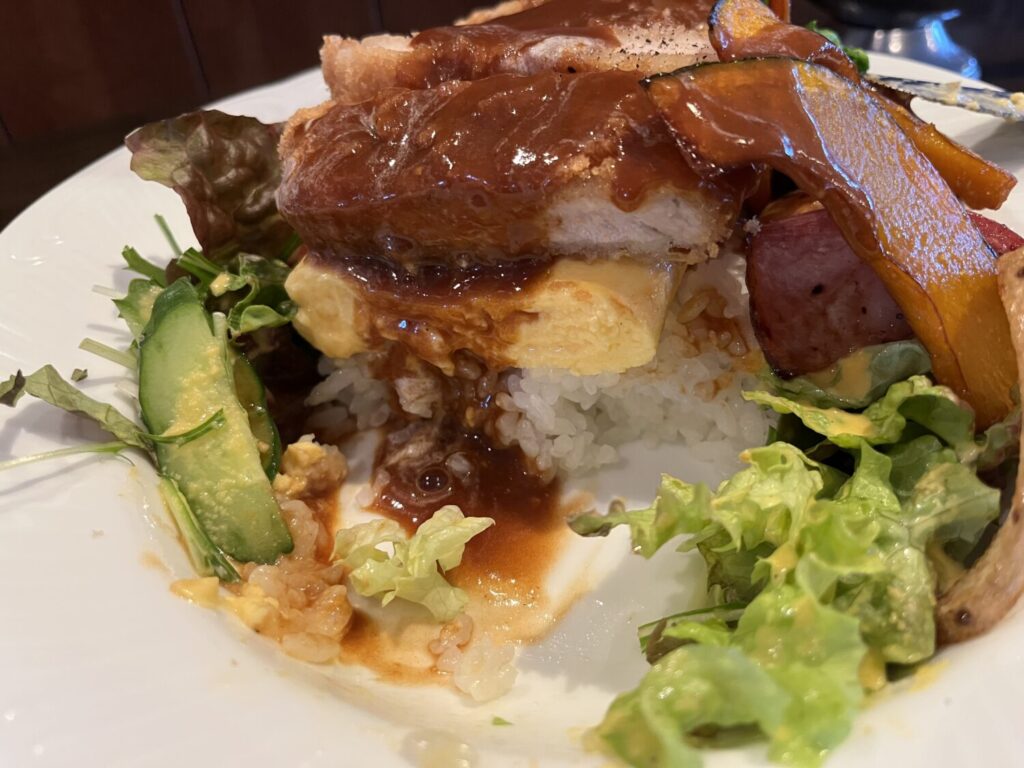 この日に頂いたのは「ポークカツのオムレツライス」。朝食の印象が強いオムレツを、ランチとしてがっつり食べられたらと開発されたものです。