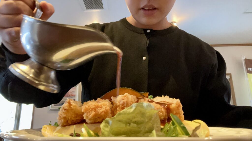 デミグラスソースは、コクがありながらくどさはなく、ソースポット1杯分かけきっても重さは感じません。食べ応え抜群、大満足の一皿です。