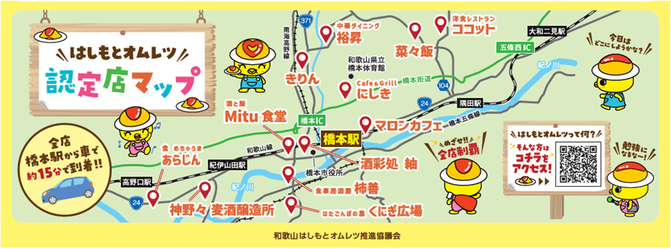 日本唯一のオムレツのまち「橋本市」。和歌山県内でたまごの生産量が最多であることから、「はしもとオムレツ」を市内ブランドとして掲げています。