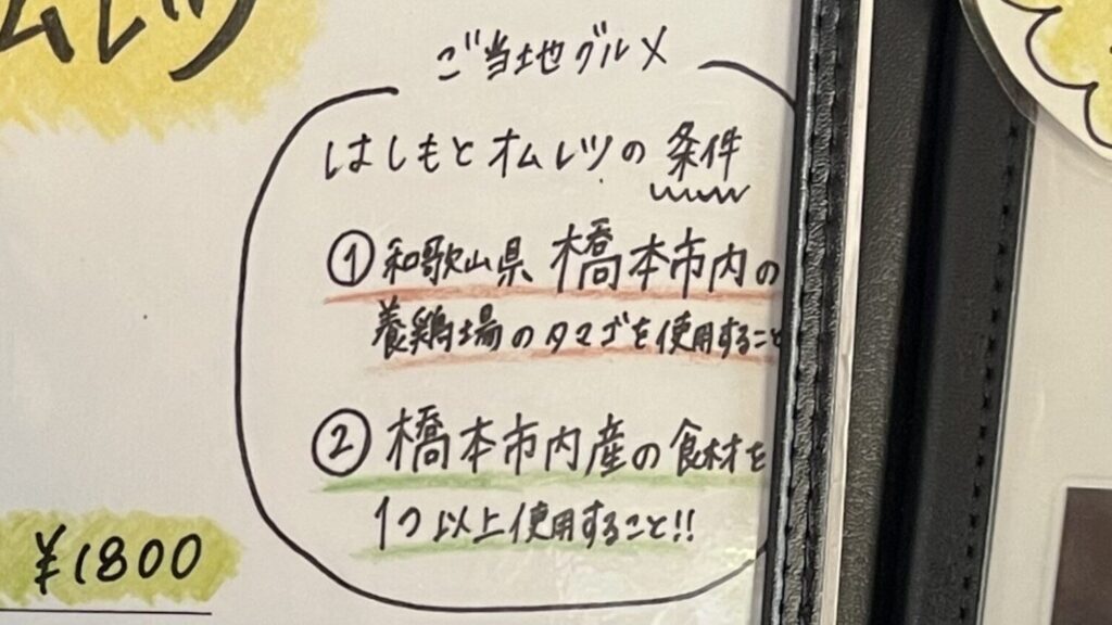 はしもとオムレツでは、橋本のたまごを使うことに加え「市内産の食材を1つ以上入れること」が定められています。