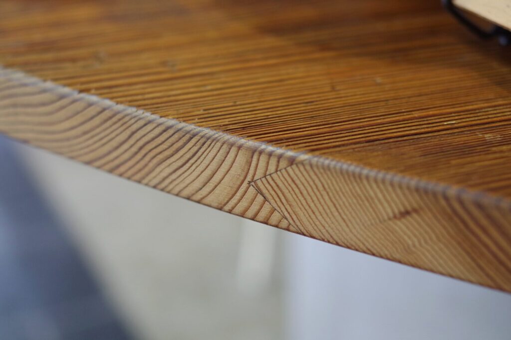 たとえば、このテーブルやカウンターは大塚酒造で昔、酒造りで使われていた直径2メートルほどの樽の蓋を使っているんです。