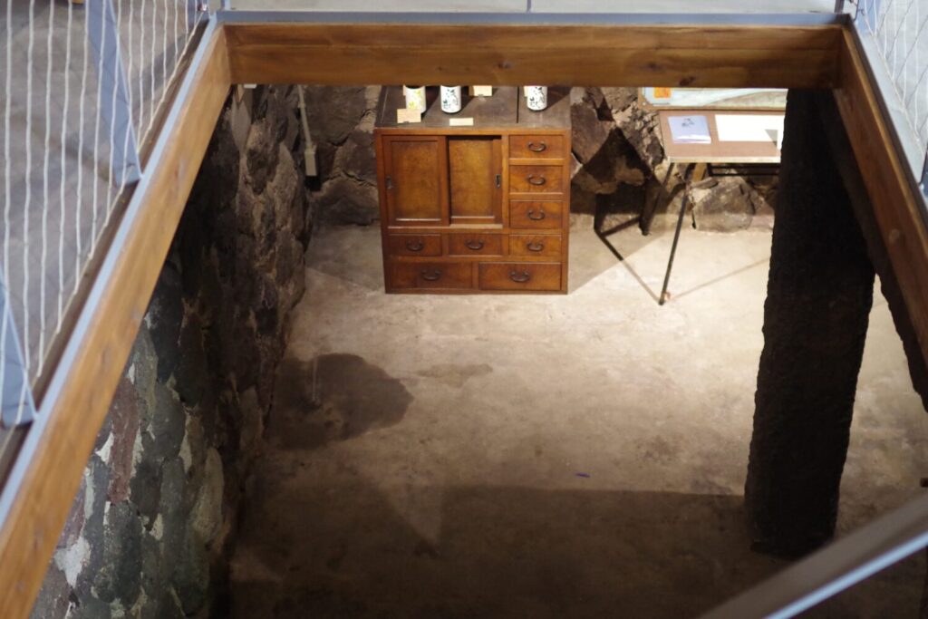 お酒を販売する地下の貯蔵庫は、石壁や石の柱といった当時の姿がはっきりと残っています。リノベーション中、大工さんと話すなかで「この建物の個性だから見せていくべきだよ」と言ってくれて。