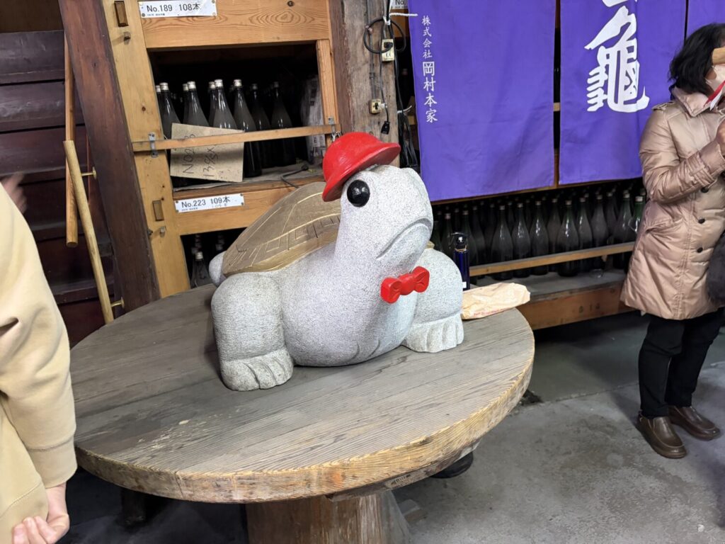こちらにも亀が。金亀には長生きする亀にあやかって長寿の思いが込められているそうです。さすがに長い歴史を紡いできた岡村本家だけに説得力がありますよね。まさにお店の守り神のようです。