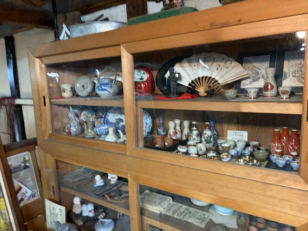 こちらにあるのは酒器。だるまや扇子などもあって、まるでおばあちゃんの家のような雰囲気があります。