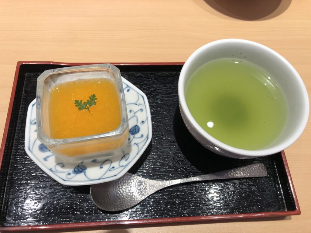 最後は甘味でフィニッシュです。おいしいお茶と共に最後のお楽しみです。全体を通じて精進料理のような満足感です。おなかいっぱいになりますが、決しておなかがきついという感じはなくどちらかというと整ったという感じの満足感。健康にいいものをたくさん食べたと感じられる食事だったので、若い人はもちろんのこと、年配の人のお食事にもぴったりですね。