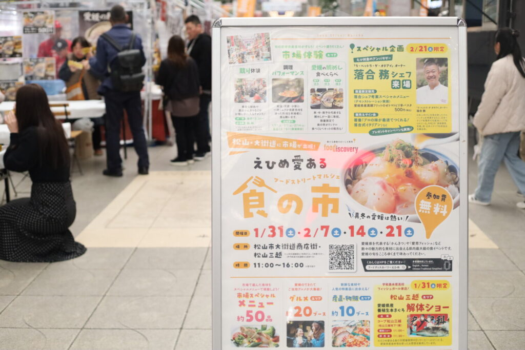 「えひめ愛ある食の市」は、愛媛県が主催する食のプロモーションイベント。単なるグルメフェスではなく、“愛媛=美味しい”というブランドイメージを確立することを目的としています。