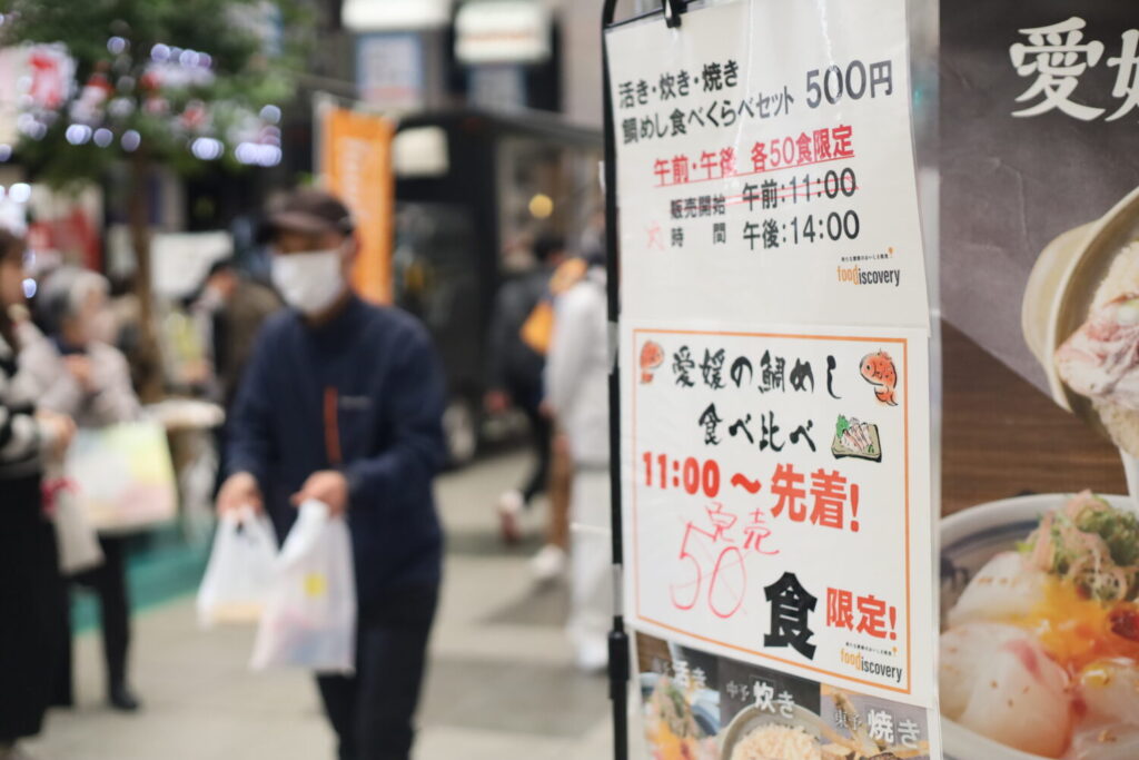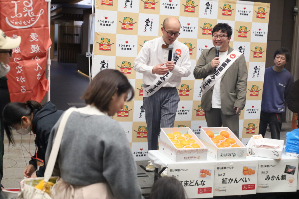 えひめ愛ある食の市は、旬の柑橘やブランド魚、鯛めしなどを通じて愛媛の食の魅力を全国へ発信する県主催イベントです。青野公宜さんの言葉からは、「愛媛の食ブランドを高めたい」という強い思いが伝わりました。冬の大街道を舞台に、愛媛の食がさらに広がっていくことが期待されます。