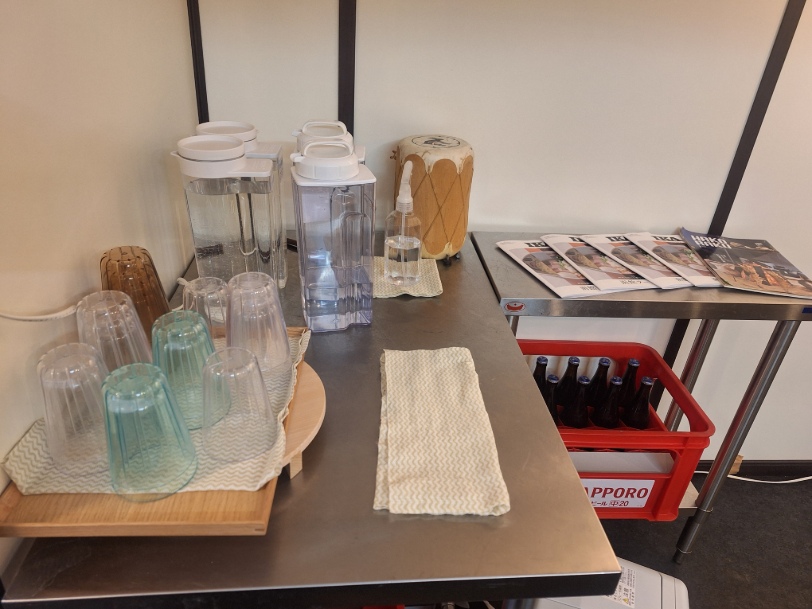 養和軒ぷらすのお水はセルフサービスになっています。こちらの台の上に水の容器が置いてあり、自由に飲めるのも嬉しいポイントです。