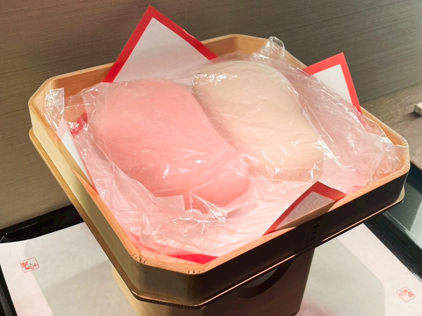 ひなまつり前の週末、2月28日限定で販売されたおこしものをいただきました。三種の木型で作られた鯛・梅・扇はどれも縁起がよく、筆による控えめな色付けが白い生地に映えて、かわいらしい佇まいです。