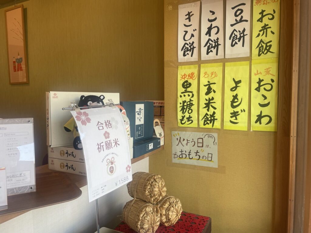 学問の神様・上野天満宮が近いことから受験シーズンには合格祈願米も販売。