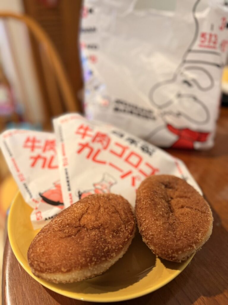 店内に入りすぐ目に入るのが、自家製牛肉ゴロゴロカレーパン。大人気!と分かりやすいPOPもあり、思わず手に取ってしまいます。私自身も子供たちも大好きなカレーパンで、本当に牛肉がゴロゴロ入っているんです。コロコロではなく、ゴロゴロ。牛肉の旨味をたっぷりと感じられて絶品。焼き立て時間も掲載されていて、揚げ立てを食べられるのも嬉しい。もちろん時間が経ってからも美味しく食べられます。