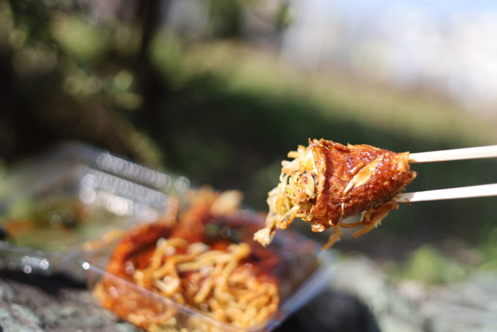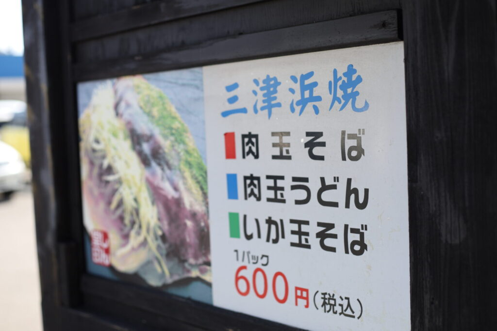 三津浜焼きは見た目以上にボリュームがあり、ランチや軽食としても満足感のある一品。一番人気は肉玉そばで、香ばしいソースの香りとキャベツの甘み、麺の食感が合わさり、つい箸が進む味わいです。