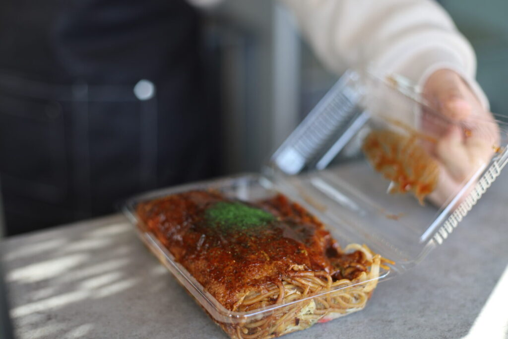 仕込みの段階で麺にもソースを絡めておくことで、全体の味に一体感が生まれるそうです。シンプルな料理だからこそ、細かな工程の積み重ねが味の決め手になっていると分かります。