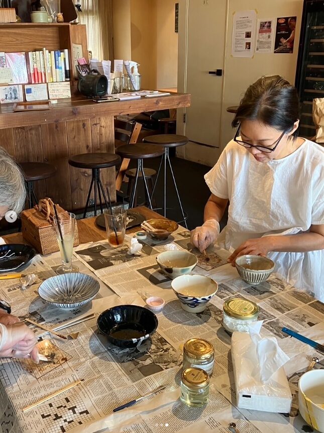 クラクラ主催で続けているのは、金継ぎのワークショップ。割れや欠けた器を金や漆で修復する、日本の伝統技法です。