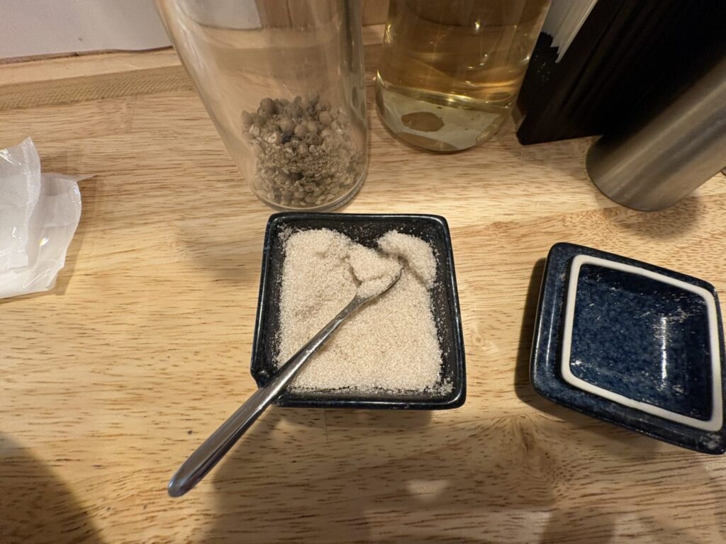 卓上には藻塩が用意されており、最初はそれを軽く振って食べるのがおすすめの流れです。