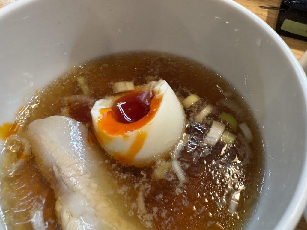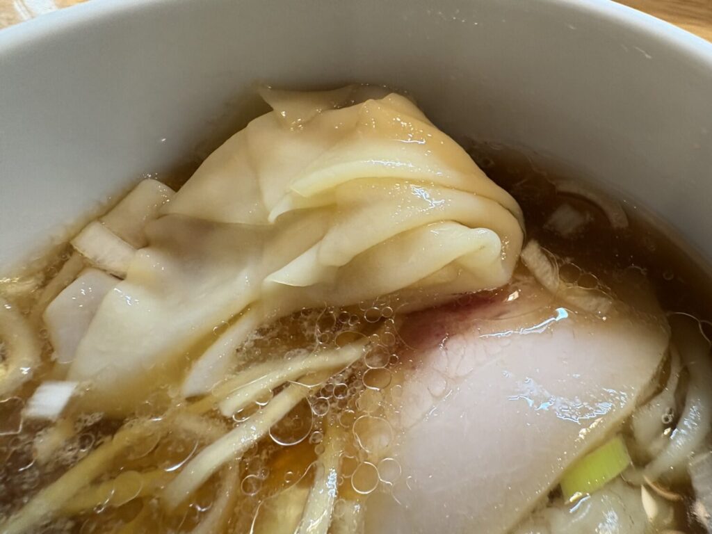 煮卵は黄身までトロトロで、スープと合わせることでより濃厚な味わいに。ワンタンはつるりとした皮とジューシーな餡が印象的で、麺とはまた違った食感の楽しさがあります。
