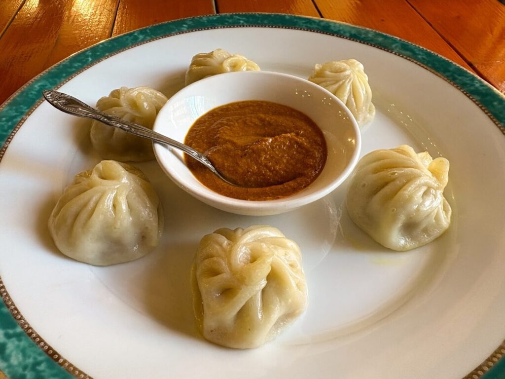 モモはチベットの蒸し餃子で、小籠包のような見た目ですが、しっかりとスパイスの風味が効いていて、中のお肉もジューシーで噛みごたえがあります。ニンニクや生姜、山椒の葉のほか、企業秘密のスパイスで味付けされています。