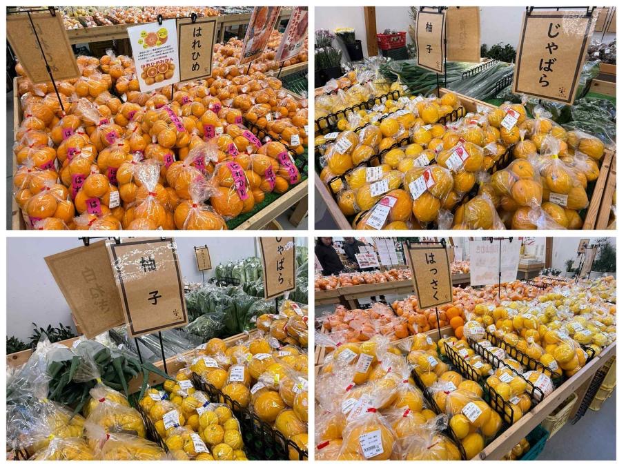 今回は、柿を中心にご紹介しましたが、「くしがきの里」の売り場には、柿だけでなく、かつらぎ町内で収穫された新鮮な野菜や、柚子やみかんなどの柑橘類も豊富に並んでいます。1月ごろに旬を迎える、強い酸味と、はっきりした苦味が特徴の「じゃばら」など、品種ごとの違いが分かるように販売されていました。