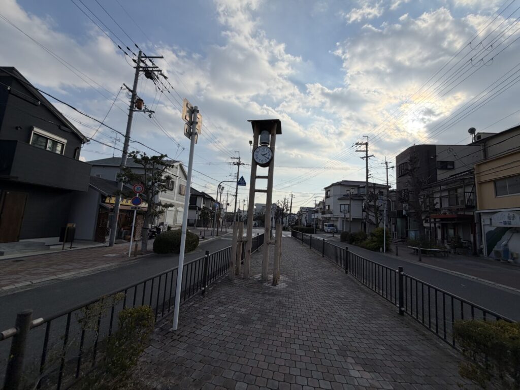 次に見えるのが半鐘です。半鐘はもともと火災や緊急事態を知らせるための鐘なのですが、禁野火薬庫も火薬や砲弾を扱う危険な施設だったため、半鐘が命を守るための警報装置として置かれていたと言われています。今は時計となって、現代の暮らしの彩りになっているのですね。