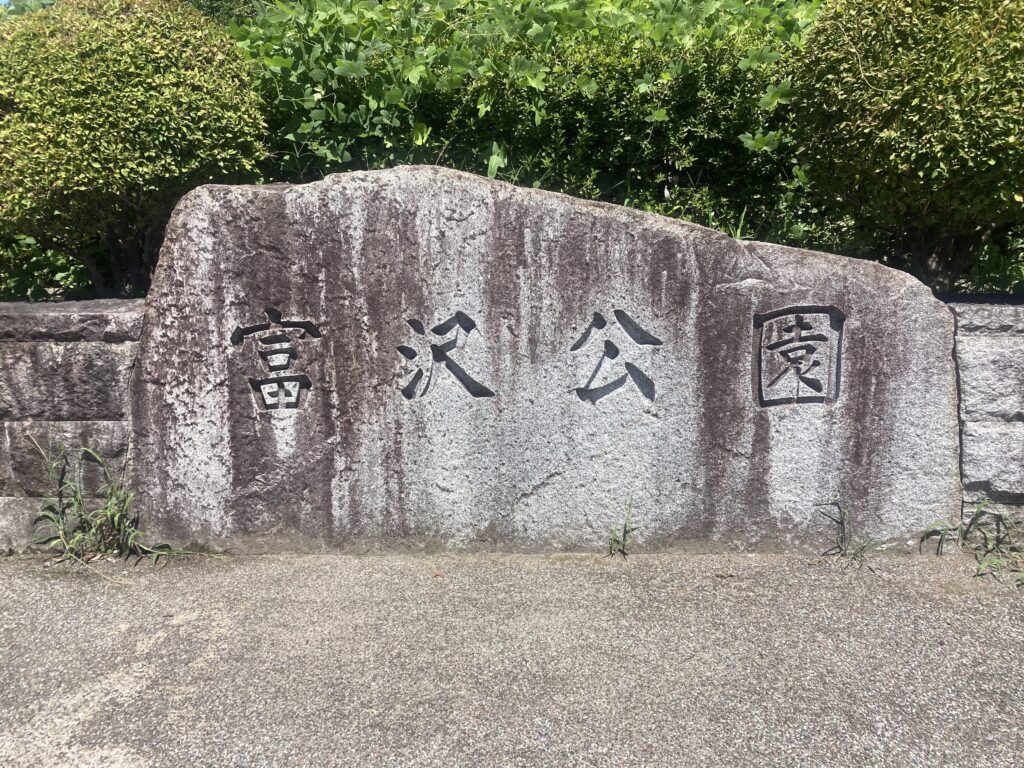 私は、仙台市営地下鉄南北線に乗って「富沢公園」に足を運びました。入口にはさっそく「富沢公園」の文字がありました。
