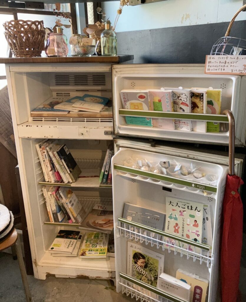 店内には遊び心満載の本棚やドリンクボックスもあります