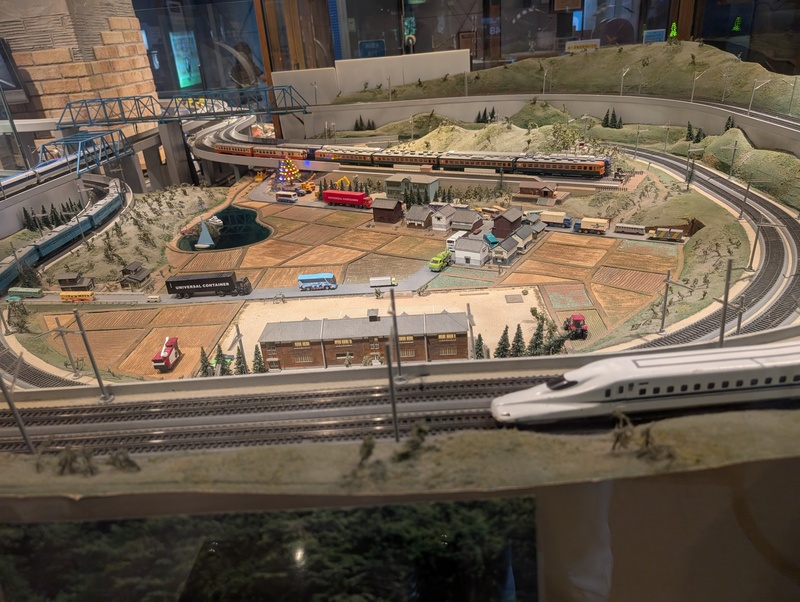ここ「ガリバーランド」は、鉄道模型が走る巨大なジオラマの展示です。電車の車体を見るのが好きな筆者は、ガリバーランドのエリアにしばらく釘付けになっていました。