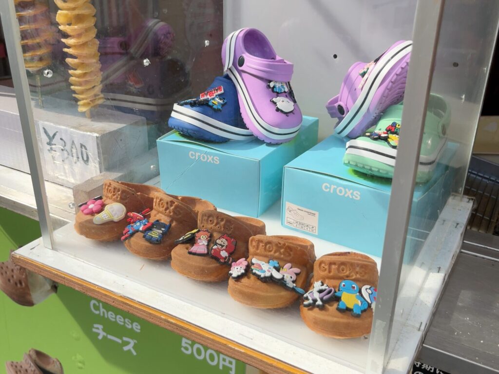 インスタ映えといえばこちら。これはクロックスのサンダルを模したカステラ生地の焼き菓子です。実際の子供のクロックスのサンダルよりもずっと小さいサイズなのですが、それが逆にかわいいです。