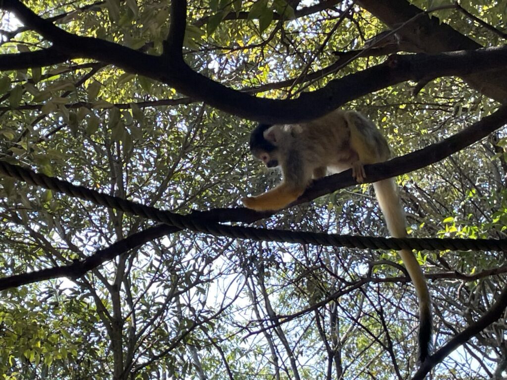 リスザルが、ぴょんっと木から木へ飛び移る姿も見ることができます。木の上を動き回る様子は、とても活発で見ているだけでも飽きません。