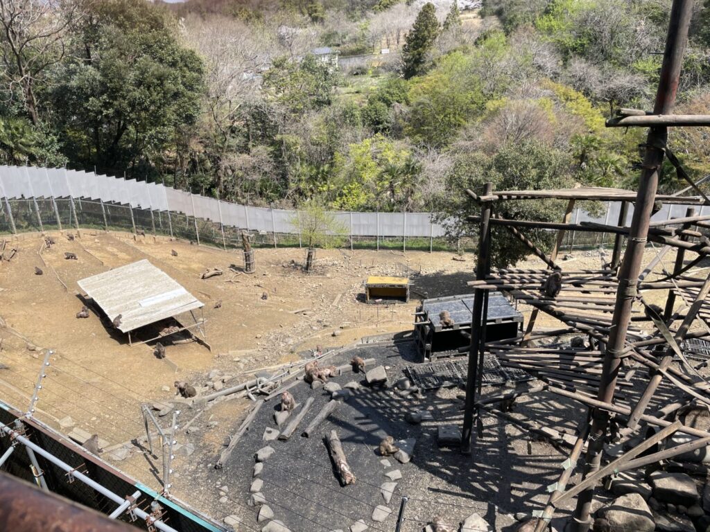 面白い形の柵もありました!園内に響くサルたちの大きな鳴き声も、来園者を楽しませてくれる見どころのひとつです。