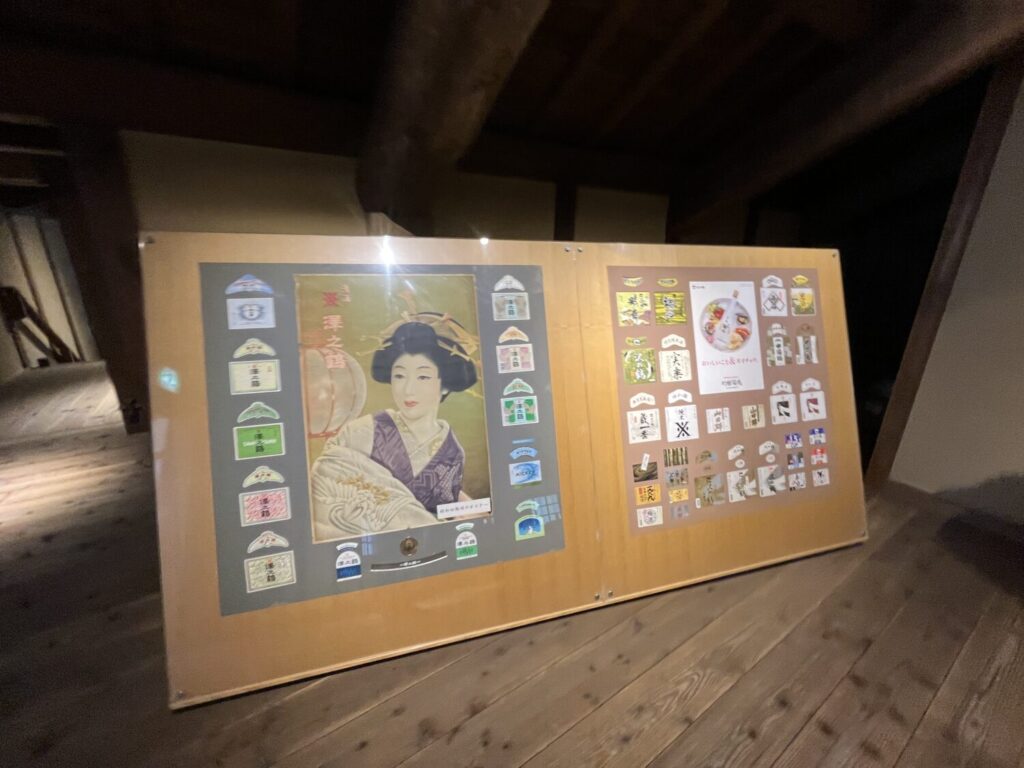 2階に上がると、沢の鶴の歴史を辿る展示が広がっています。300年以上の歴史を持つ老舗酒造の歩みが、古文書や写真、当時の広告などを通して紹介されています。