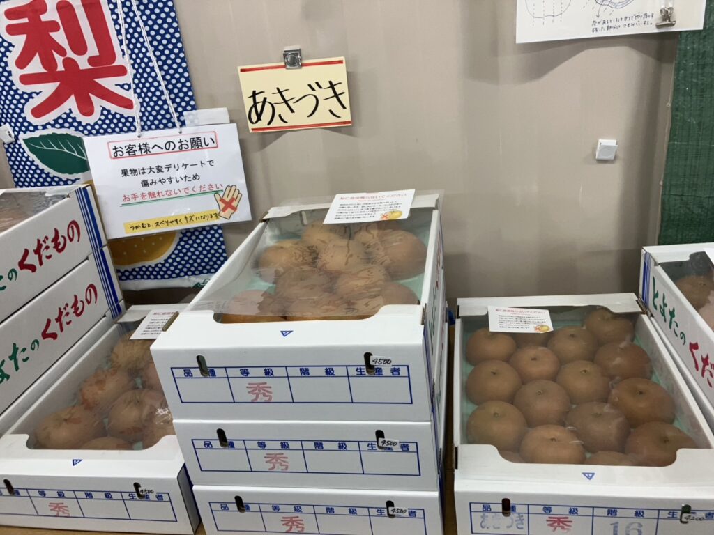 梨は品種によって見分けるための色も違うので、梨については店員さんに聞いてみてください。より好みの梨に近づけるよう相談にのってくれます。