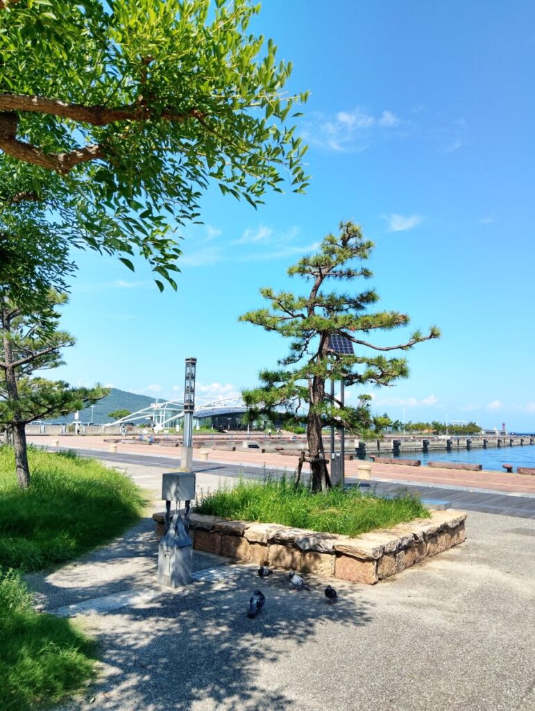 そんな秋風に吹かれながら、穏やかな瀬戸内海を眺めつつ散歩ができるのがサンポート高松です。