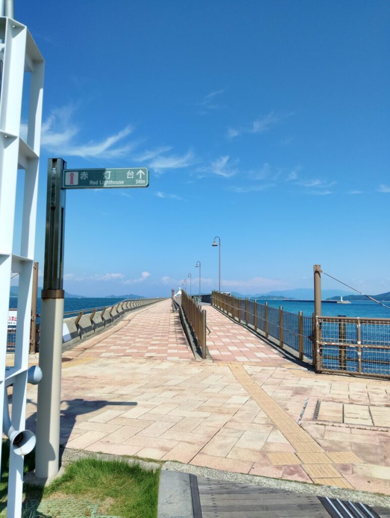 灯台へと続く540mの道のりは、瀬戸内海に浮かぶ島々を見ながら海の上を歩いているような高揚感があるので行く価値あり。
