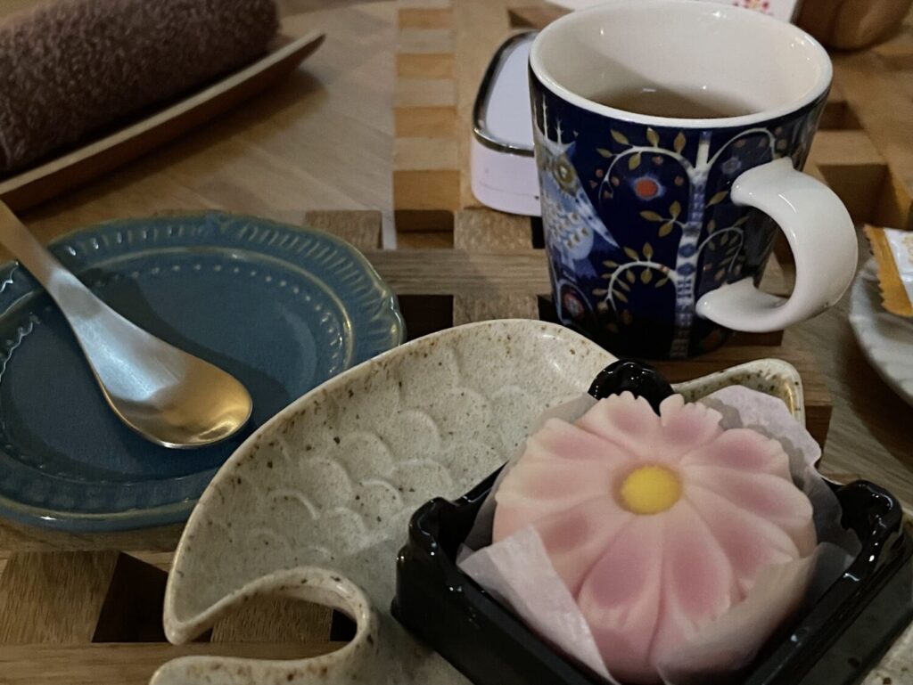 施術が終わり着替えを済ませると、そこには温かいお茶と練り切り。