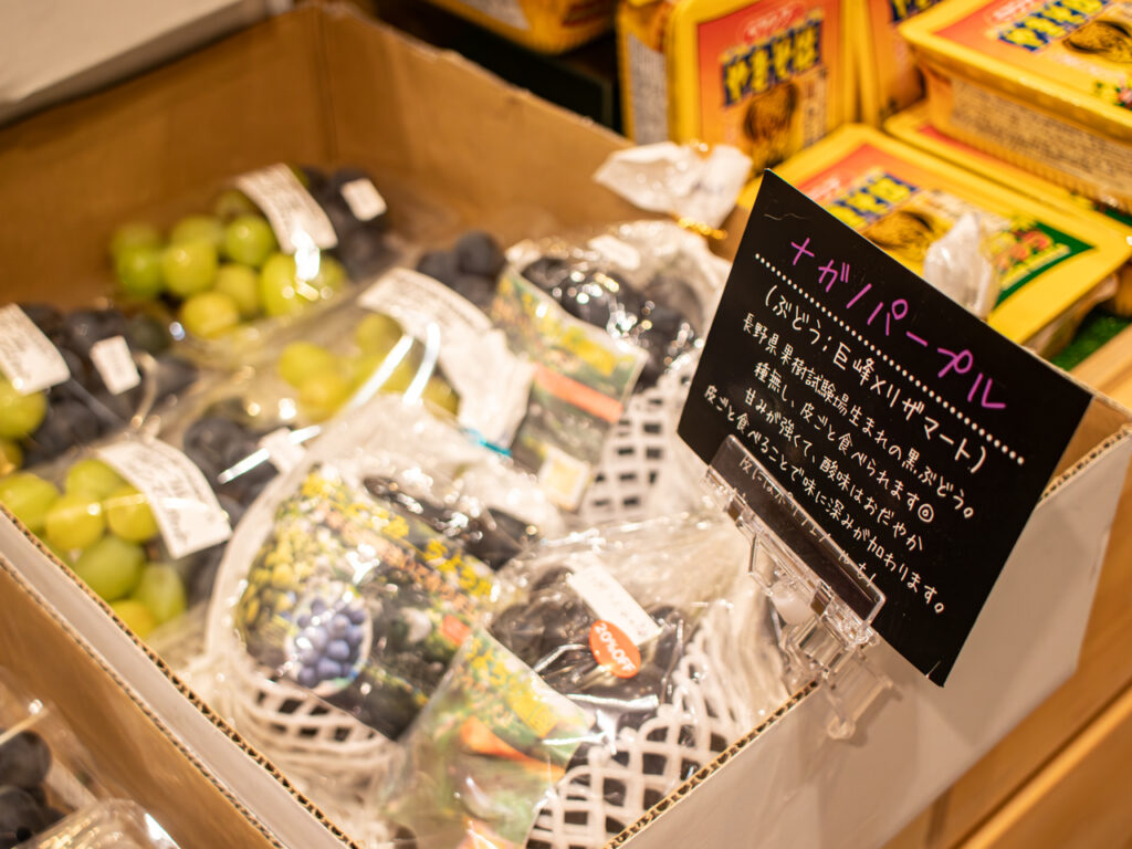 入店すると、ズラッと並んだ彩り豊かな野菜たちがお出迎え。野菜や果物は、すべて信州のものです。店内の商品には、味わいやおすすめポイントが書かれたポップが添えられています。ポップを読みながら商品を選ぶお客さんの姿が印象的でした。