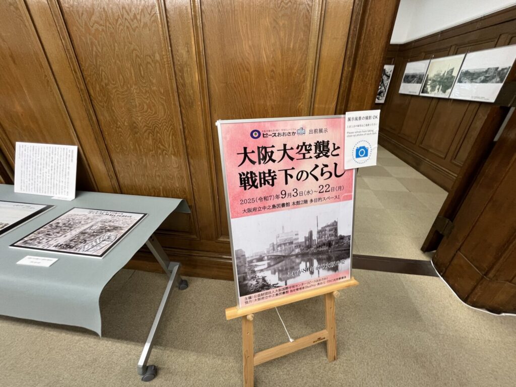 展示室ではピースおおさか(大阪国際平和センター)の出張展示で「大阪大空襲と戦時下のくらし」が開催されていました。