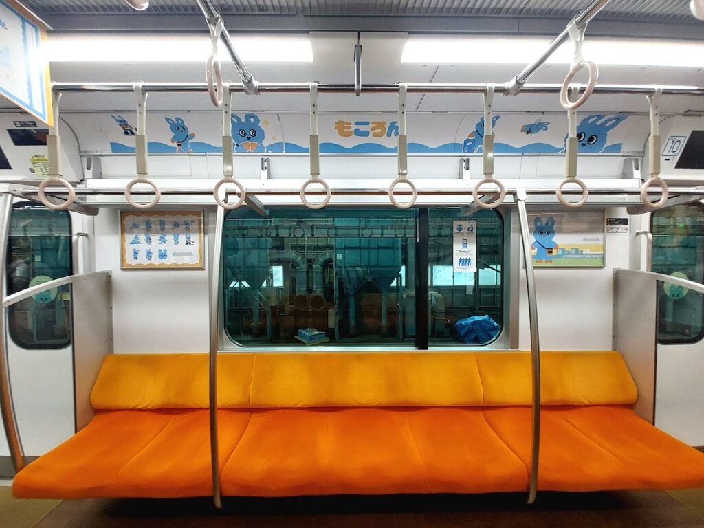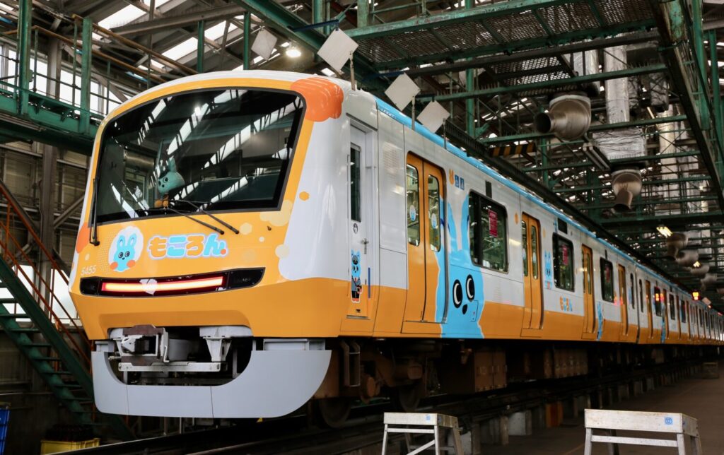 「もころん号」とは、「もころん」を全面にラッピングした特別車両で、2024年6月から第2弾としてデザインされ、運行を開始しました。1〜5号車は「夕空」、6〜10号車は「朝の空」をテーマに、さまざまな表情の「もころん」が描かれています。